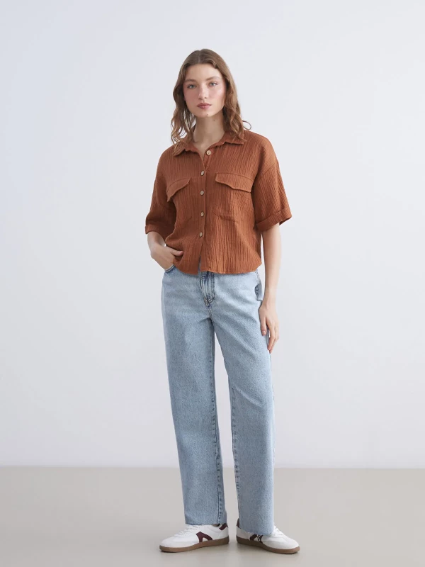 XSIDE Textured Muslin Women's Shirt